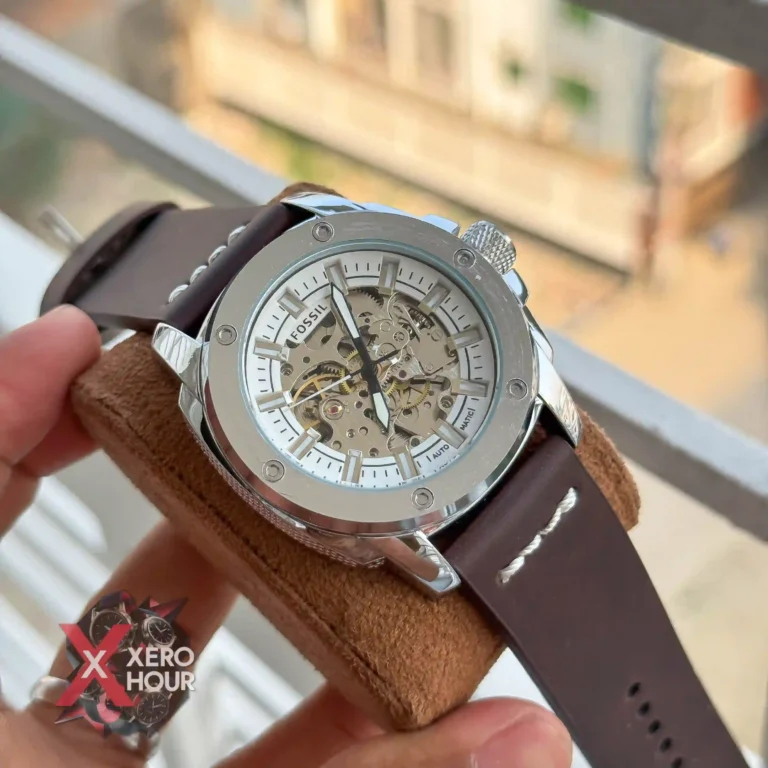 Fossil Automatic Leather Belt Watch | Brown Belt Silver Body