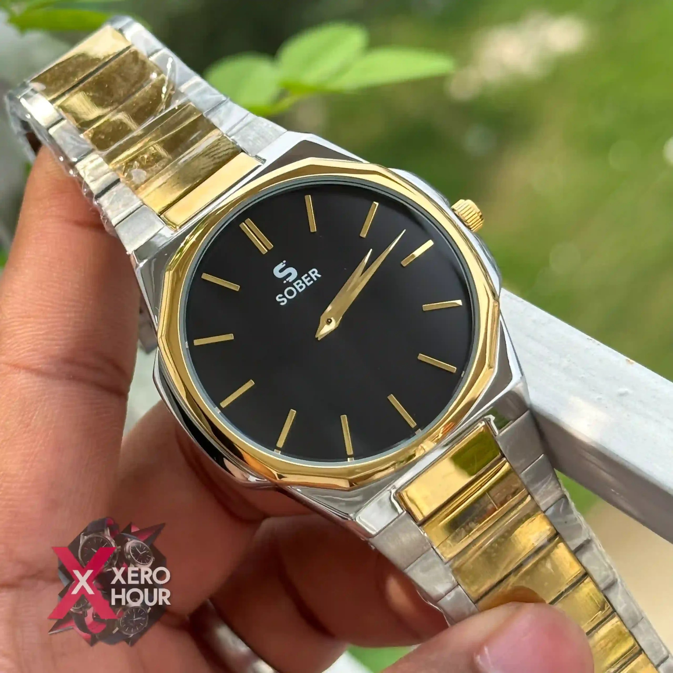 Sober Hexa Style | Authentic brand | Dual Tone | Black dial | Sunbrust effect dial